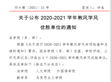 日前,永利集团2020-2021学年教风学风优胜单位评比揭晓,我系获评优胜单位。这是我系连续第5个学年获此殊荣。